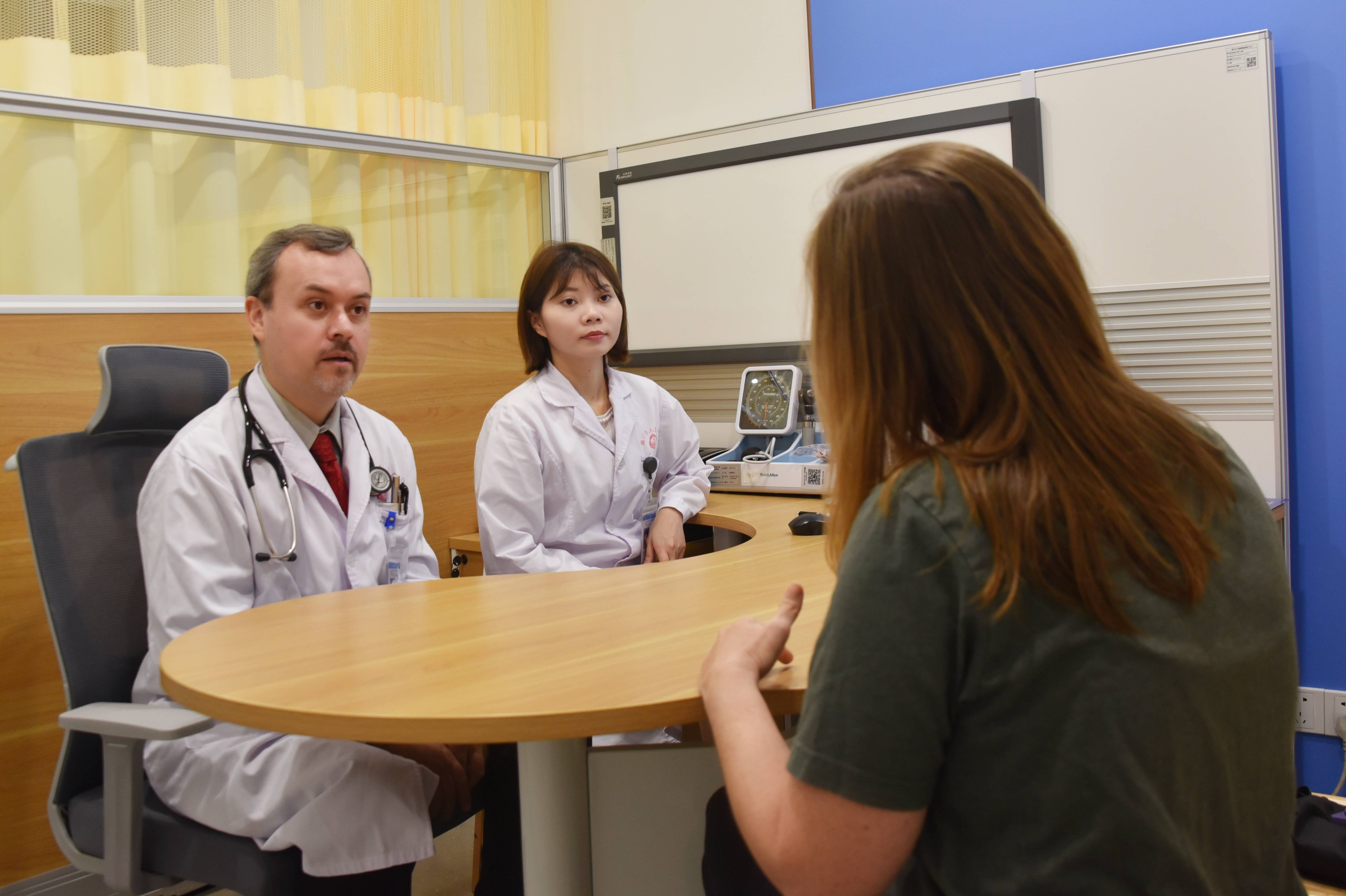 新华社海口10月30日电(记者陈凯姿)海口市东谈主民病院国际医疗部,好意思籍医师沈义扬正耐烦为又名来自英国的患者诊疗寝息拦阻。时而用英语筹谋寝息困扰细节,时而切换华文和照顾交接施治决策……这么的场景,在他扎根海南十余年间,早已成为常态。