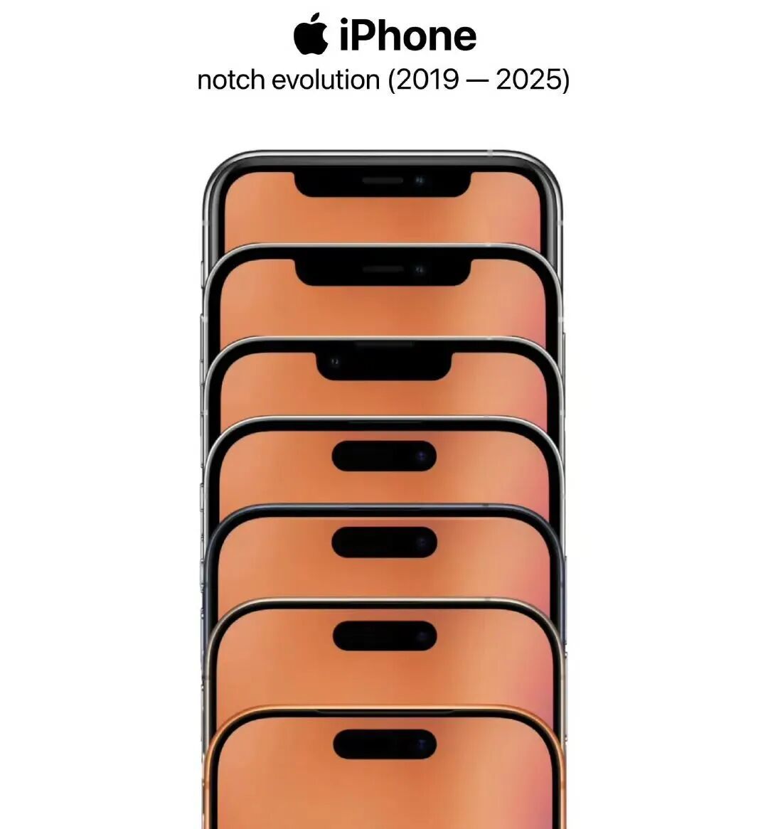 缩岛 → 进一步缩岛 → 单挖孔(保留前置录像头) → 屏下Face ID熏陶 → 真全面屏
