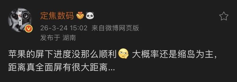 回到博主爆料的中枢信息:苹果屏下时代推崇不顺,距离真全面屏有很大距离。