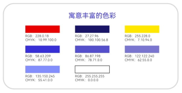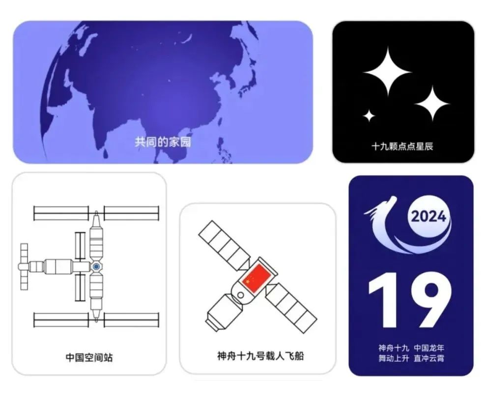 标志外圈选用红黄两色,代表中华东谈主民共和国国旗。里面为体现天地的艰深与玄机,故选用深蓝色,地球配景部分则选用浅蓝色,并离别出大气层、海洋、陆地。空间站和神舟十九号载东谈主飞船长体为白色,体现科技感的同期与背惬心彩产生对比,强调视觉主体。