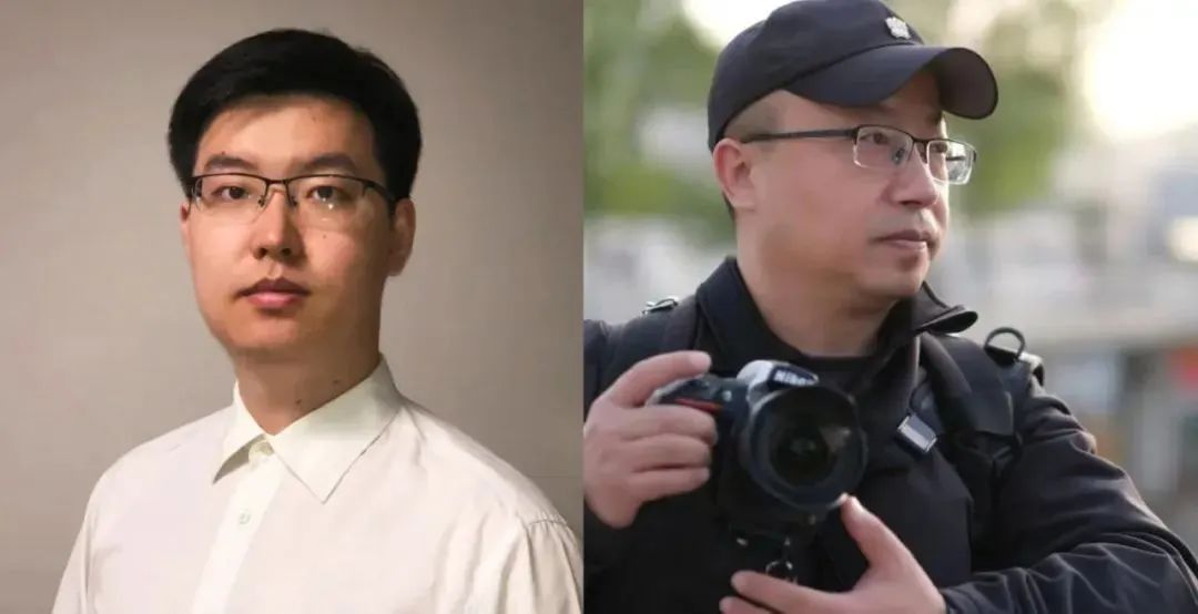 神舟十九号载东谈主遨游任务标志筹划者丁一(左)、吴林桦(右)