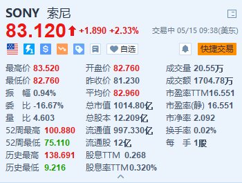 格隆汇5月15日|索尼(SONY.US)涨超2.3%,报83.12好意思元。有音讯称,索尼影视文娱正在再行研讨对派拉蒙大家公司的竞购。至少索尼影视文娱对派拉蒙大家通盘这个词公司进行竞购的可能性似乎正在裁减。